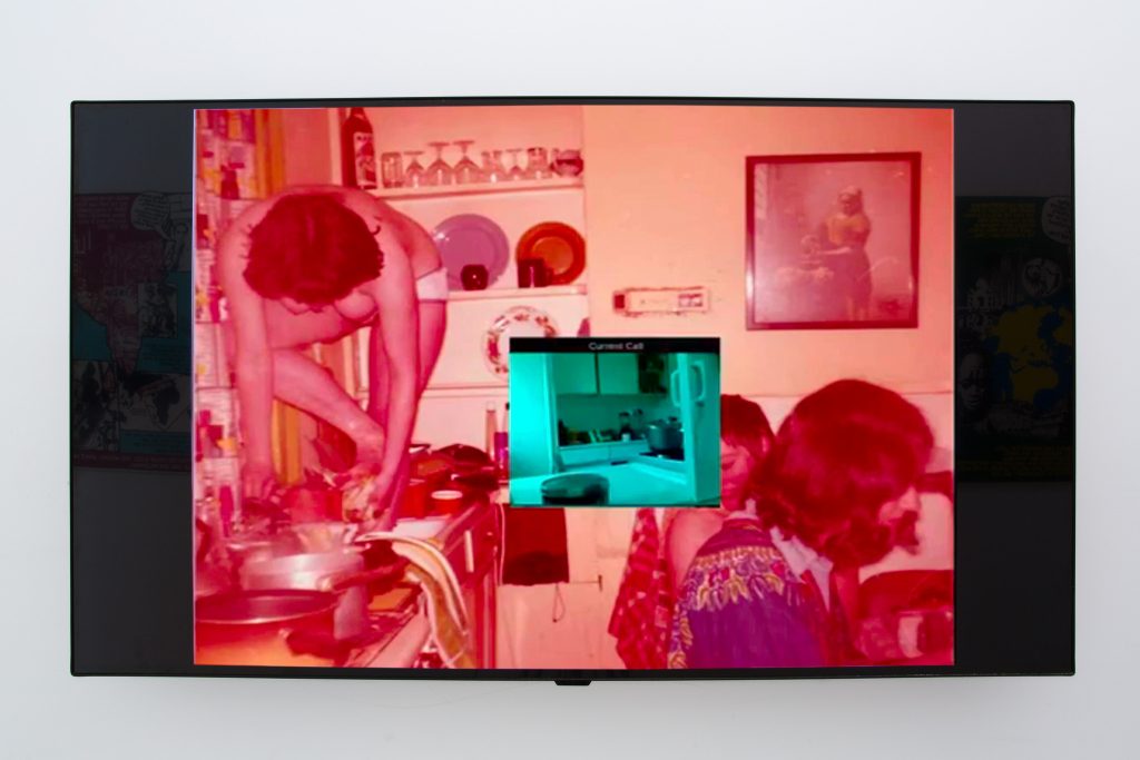 ‘In many ways, this short film contains the entire problem of infrastructural critique as Marina would go on to develop it. In the opening sequences, we see a picture of four women eating while a fifth bathes naked in the sink in a women’s squat in Rosetta Street, South London in 1974, along with images of Marina’s own kitchen in Hackney, East London, shot through a wall-hatch from the living room next door. ‘Generally’, Marina suggests gently on the voiceover, ‘washing is not conversational’ and ‘does not usually share space with dinner parties’. Yet the ‘mediations’ or more simply the walls in this image have collapsed, and in place of two distinct reproductive and social ‘institutions’ we see the sinuous outlines of one, a domestic moebius strip: ‘a home dwells folded into itself as an institution and then transits as if whole and unharmed into another institution, so a ground that also feels like a container’.’